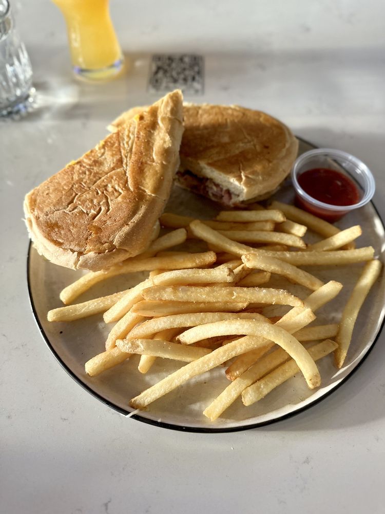 Slagel Farms Ham, Mojo Pork, Swiss, Pickles, Mustard, Pressed Telera Roll w/ Fries