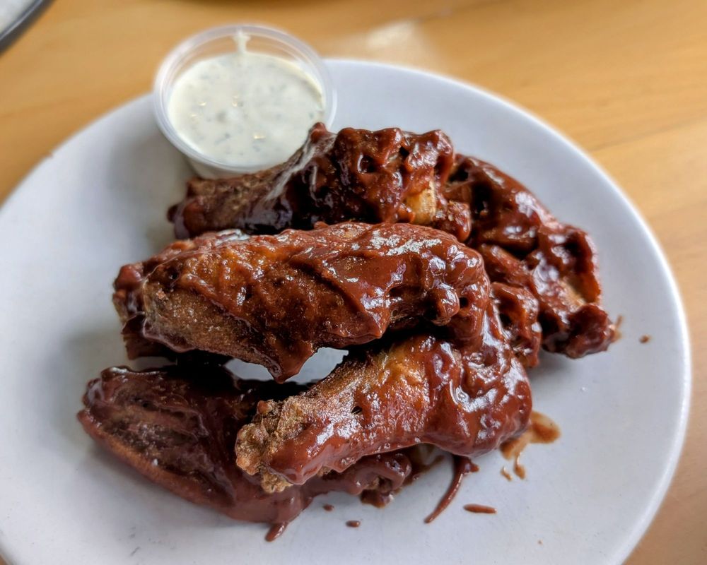 Half lb. wings in sauce of choice (Buffalo, Chocolate BBQ, Habanero Honey)